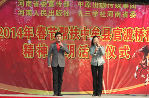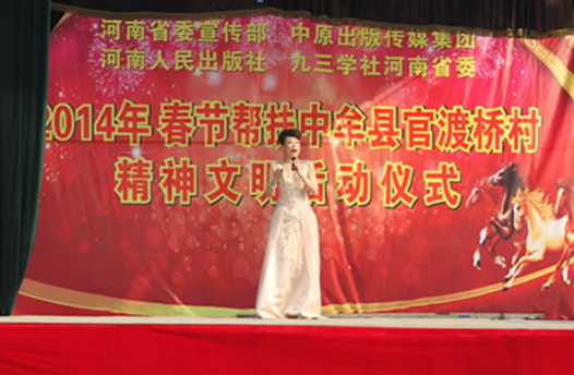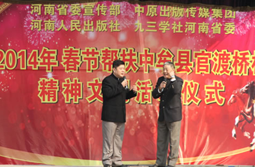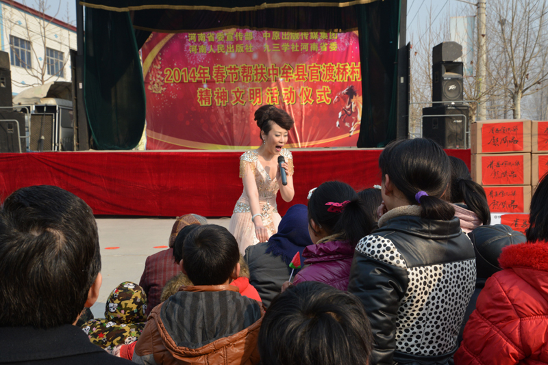 省委宣傳部副巡視員杜瑞明代表省直四家單位講了話,向官渡橋村村民送上節(jié)日的祝福。隨后,慰問團的領(lǐng)導向官渡橋村農(nóng)民群眾和小學生贈送了文體用品。由省委宣傳部邀請的薛青、郝曉冬等省內(nèi)多位知名演員為村民們表演了歌舞《田野里的春天》、豫劇《朝陽溝》選段、相聲《大腕研究》、嗩吶《百鳥朝鳳》等七個精彩的節(jié)目。在近兩個小時的演出中,臺上演員們精彩的表演,博得群眾的陣陣掌聲。省委宣傳部機關(guān)黨委專職副書記李憲林、創(chuàng)建處處長張德偉揮毫潑墨,現(xiàn)場為鄉(xiāng)親們義寫春聯(lián)。省九三學社邀請的省醫(yī)療專家為鄉(xiāng)親們傳播健康衛(wèi)生知識,現(xiàn)場檢查治療。中原出版集團和河南人民出版社為鄉(xiāng)親們贈送了科技圖書讓大家過春節(jié)時學習,整個慰問活動場面熱烈,氛圍濃厚。