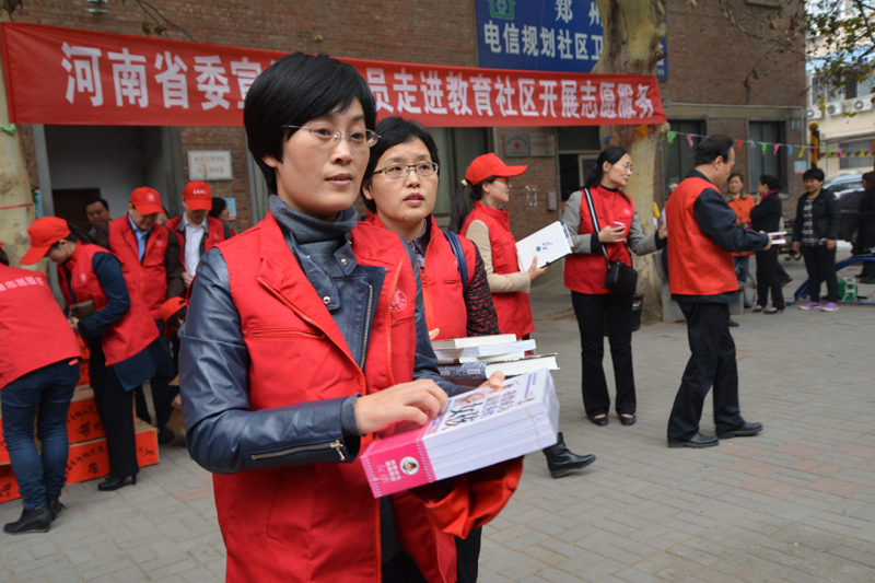 10月31日下午,一場精彩的小型文藝演出在鄭州市緯五路省教育社區(qū)舉行。演出期間,志愿者向現(xiàn)場觀看的居民免費(fèi)贈送圖書、報紙和DVD。據(jù)了解,這是省委宣傳部開展的黨員志愿服務(wù)進(jìn)社區(qū)活動。